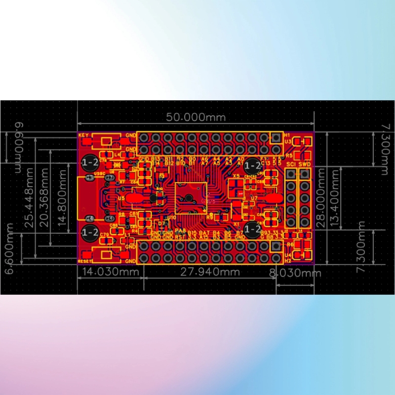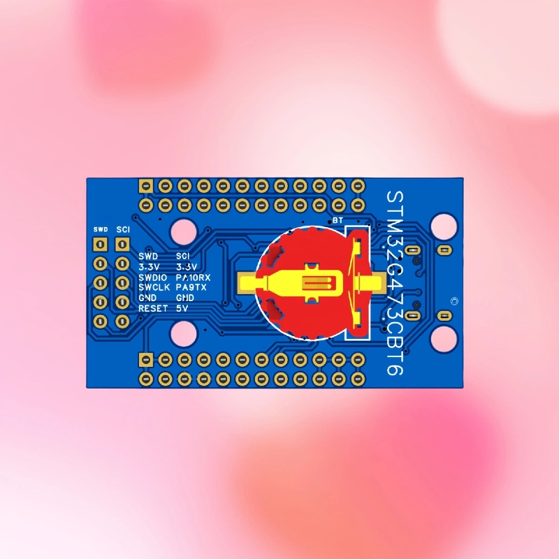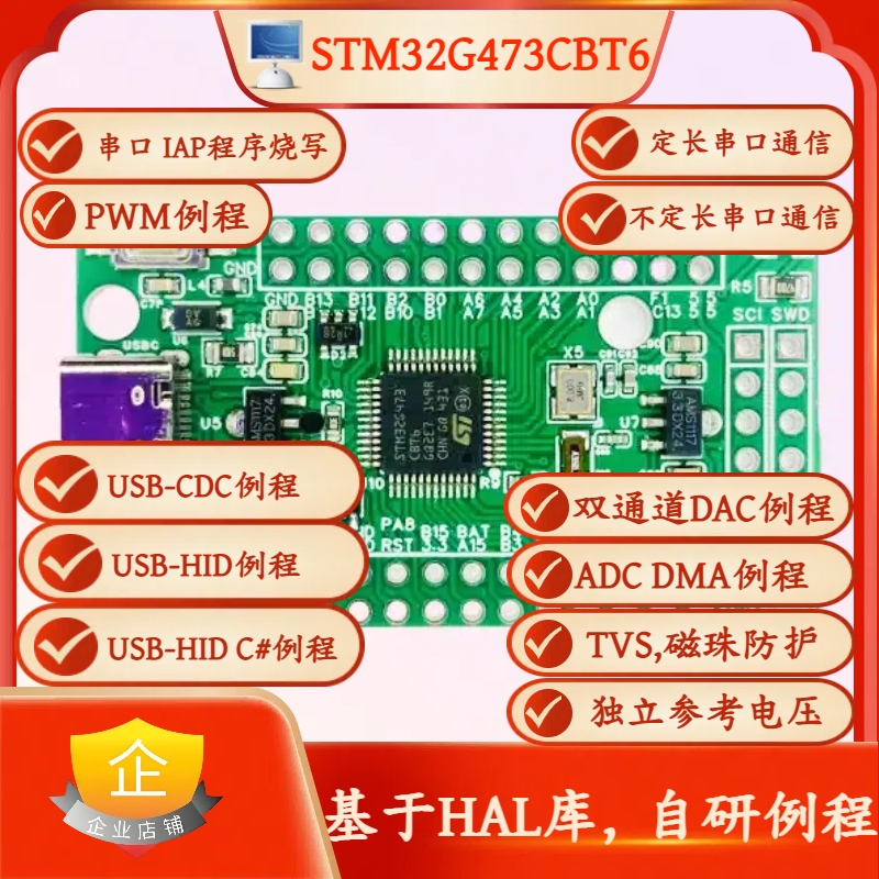 STM32G473CBT6微型开发板,ADC参考电压独立供电,不受负载影响。STM32G473CBT6微型开发板背面预留CR1220电池座,客户在需要的时候,可以自行焊接。本案提供以下例程: