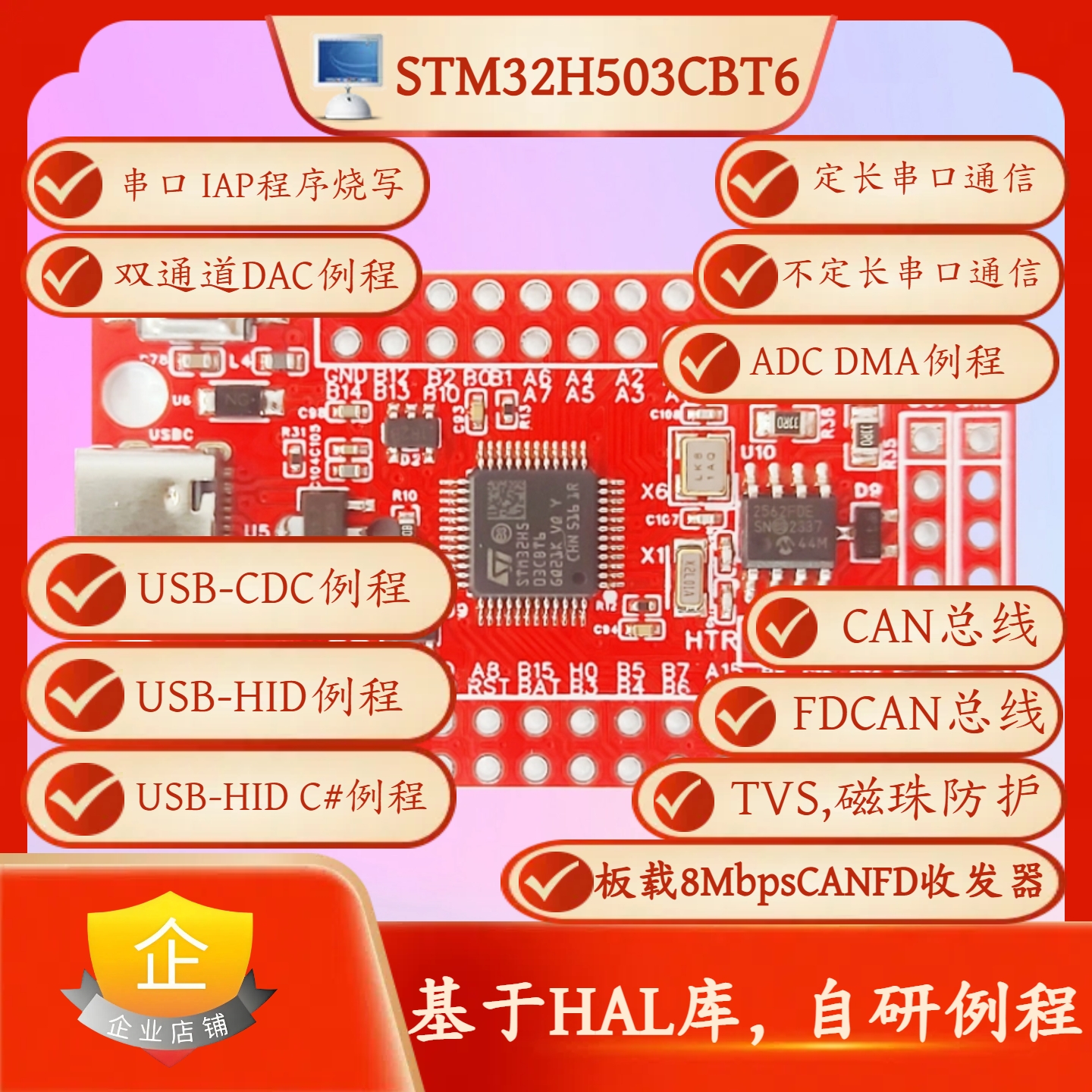 基于STM32H503CBT6的CAN/CANFD总线开发板之串口1(可修改串口号)应用内程序烧写(IAP)例程包含以下程序: